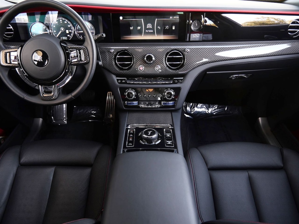 Rolls-Royce Motor Cars Westlake is pleased to present this 2022 Rolls-Royce Black Badge Ghost as part of our hand selected pre-owned lineup. This gorgeous example is finished in Black over Black and Phoenix Red interior.