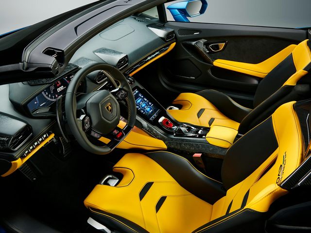 The standard features of the Lamborghini Huracan EVO Base include 5.2L V-10 630hp engine, 7-speed auto-shift manual transmission with overdrive, 4-wheel anti-lock brakes (ABS), Integrated navigation system, Side seat mounted airbags, Driver and passenger side airbag head extension, Airbag occupancy sensor, Air conditioning, 20" aluminum wheels, All-wheel, Cruise control