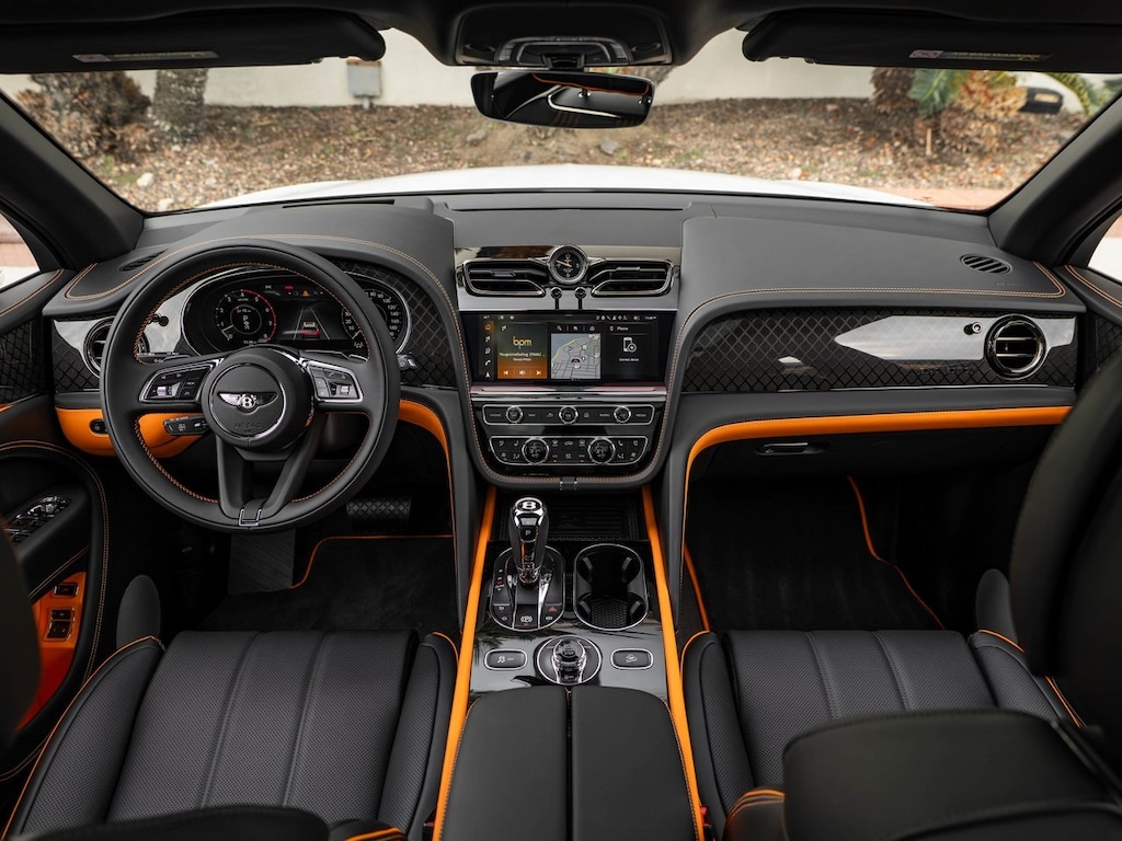 Bentley San Diego is proud to present this 2025 Bentley Bentayga S Black Edition V8 in Glacier White and Mandarin.